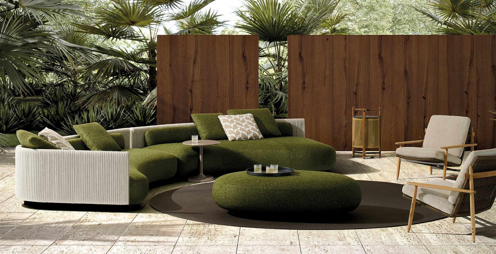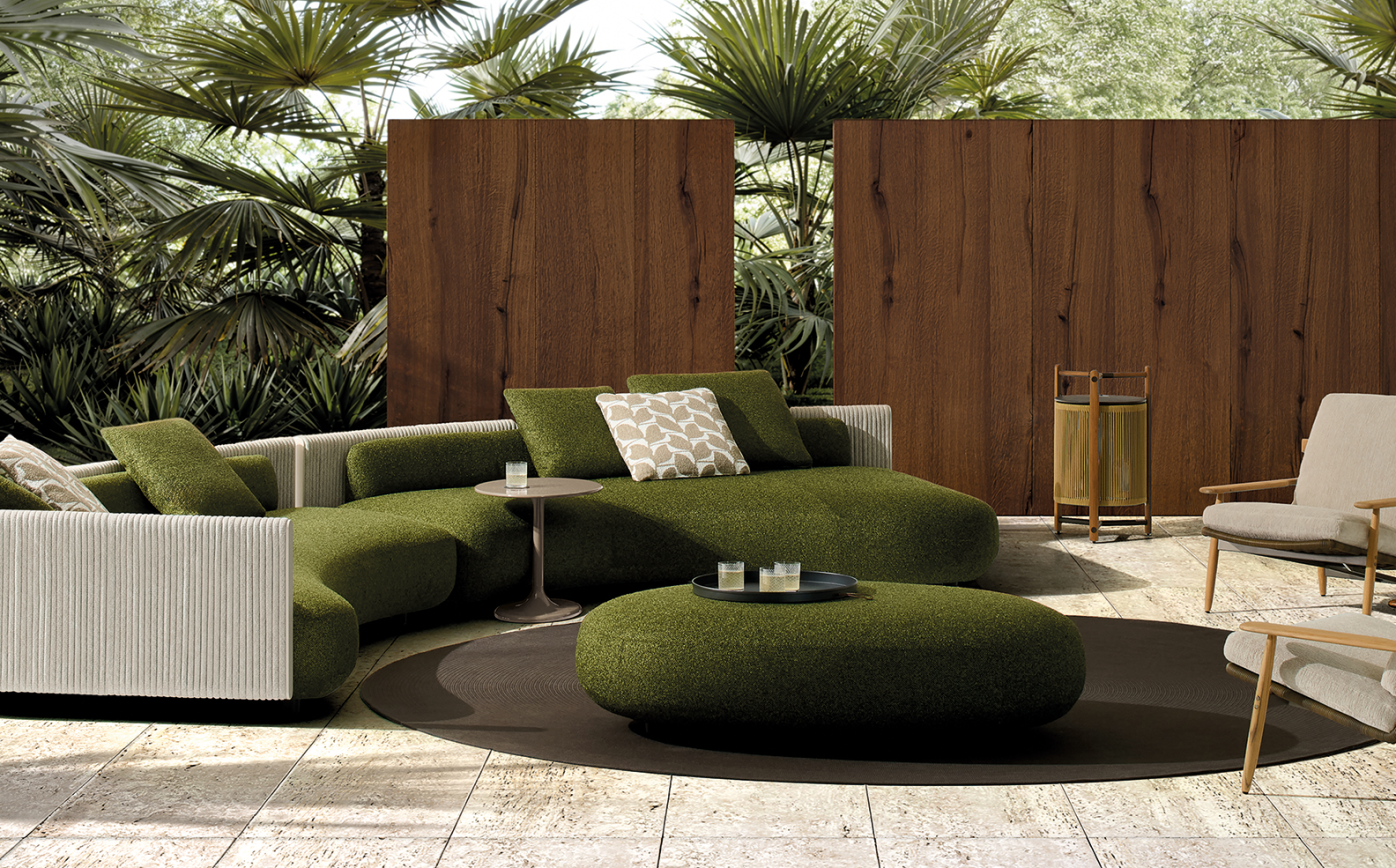 This summer, gather to relax outdoors in comfort with Minotti. Designed by Brazilian based architectural practice Studio MK27, this exceptionally comfortable seat is defined by its softness. Characterised by enveloping volumes, the Bézier Cord Outdoor sofa explores unique seating landscapes. The curved elements can be used together in various combinations or as standalone pieces. Select from pebble-like ottomans and coffee tables, that will compliment and build settings to suit your small, medium or large outdoor areas.