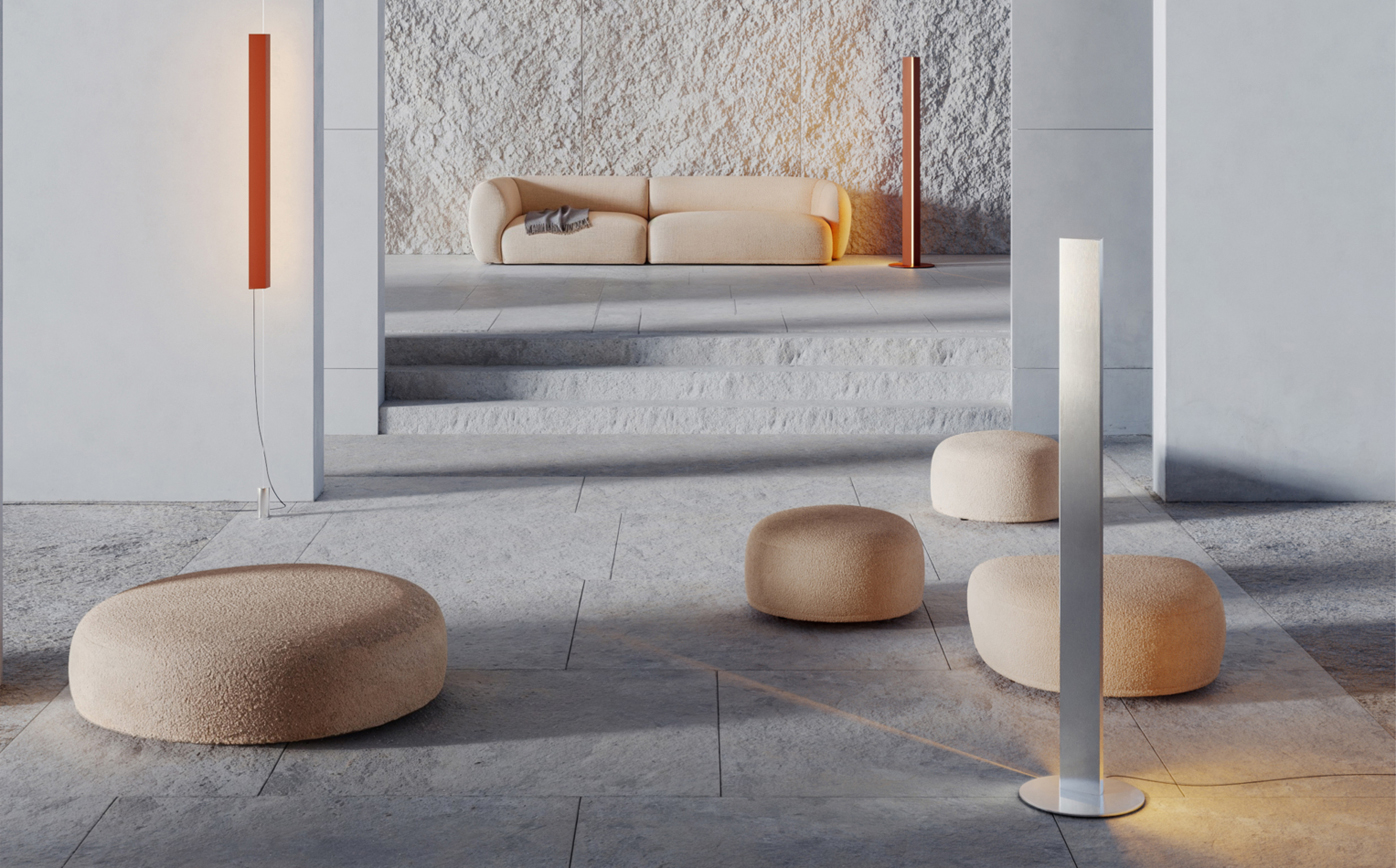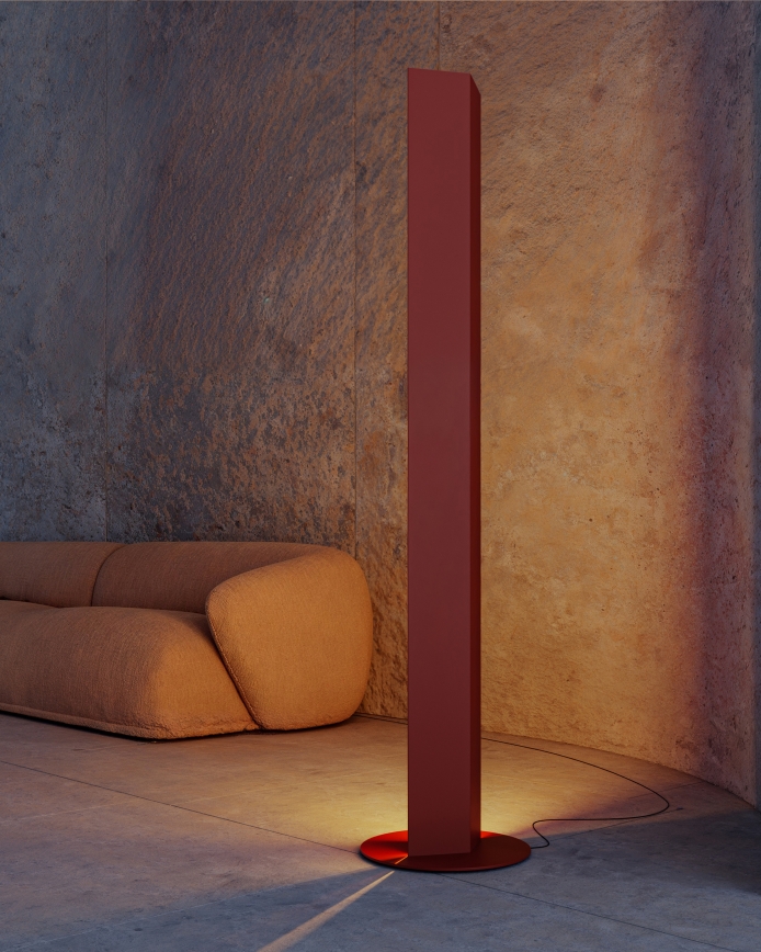 Stripe by Mayice Studio is the first LEUCOS collection designed without glass. This minimalist metal lighting system interacts with its surroundings through reflection and movement. The Stripe TR Floor lamp is constructed from brushed stainless steel, stands at 1800mm tall, and is available in yellow, terracotta, white, or unpainted finish. The finish diffuses light in shifting directions, turning illumination itself into an architectural element. The stripe range also features the distinctive profile as a floor light, and pendant light.