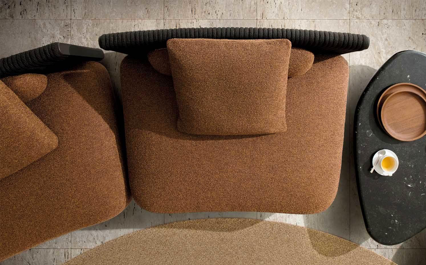 The Bézier Cord Outdoor seating system designed by Studio MK27 reimagines open-air living with generous, sculptural forms that bring a sense of softness to outdoor spaces. The collection includes armchairs, sofas, ottomans, and modular elements, allowing for flexible arrangements or stand-alone use. A painted tubular aluminium frame, wrapped in polypropylene cord and finished with matching aluminium plates, defines its tactile character. The one-piece seat offers uniform comfort, with precise stitching that traces the curves of each element. Elevated on recessed stainless-steel feet, Bézier Cord Outdoor combines material refinement and relaxed elegance, ideal for both formal and casual settings.