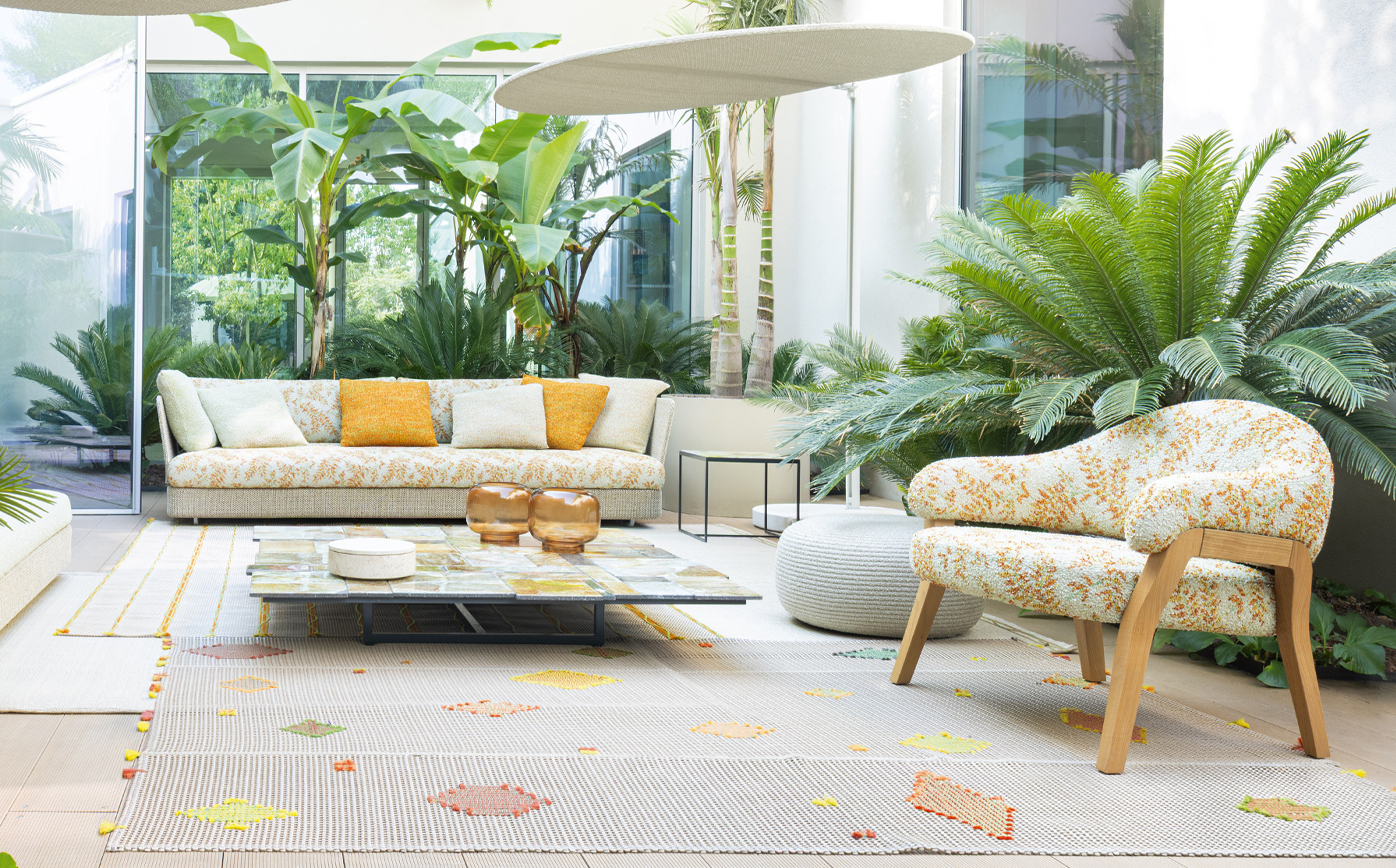Paola Lenti’s products are based on a balance of past and present, exterior and interior, tradition and technology. The shapes are kept deliberately simple, the sophistication comes from the colours.