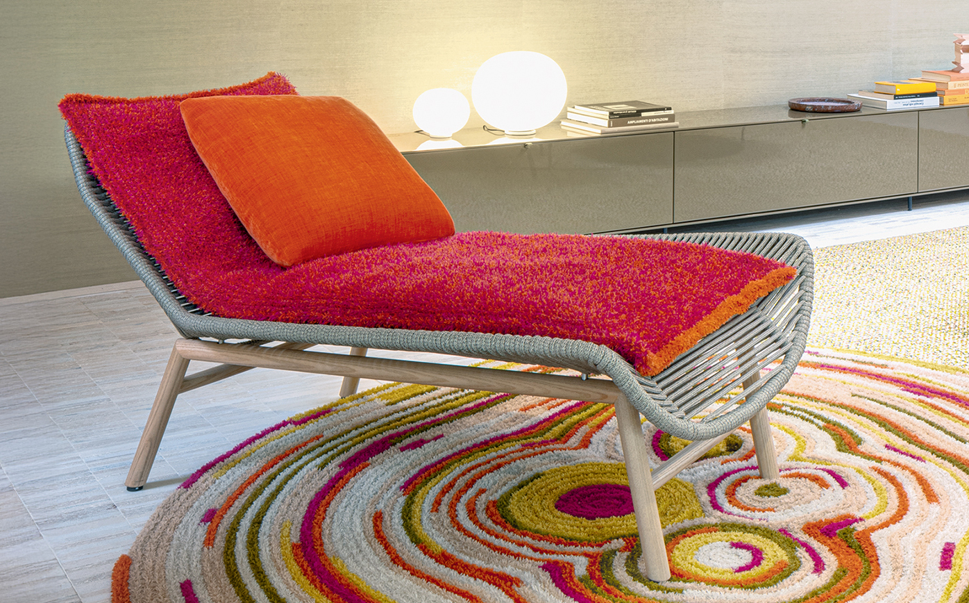 Paola Lenti’s products are based on a balance of past and present, exterior and interior, tradition and technology. The shapes are kept deliberately simple, the sophistication comes from the colours.