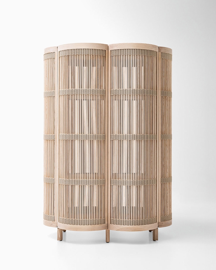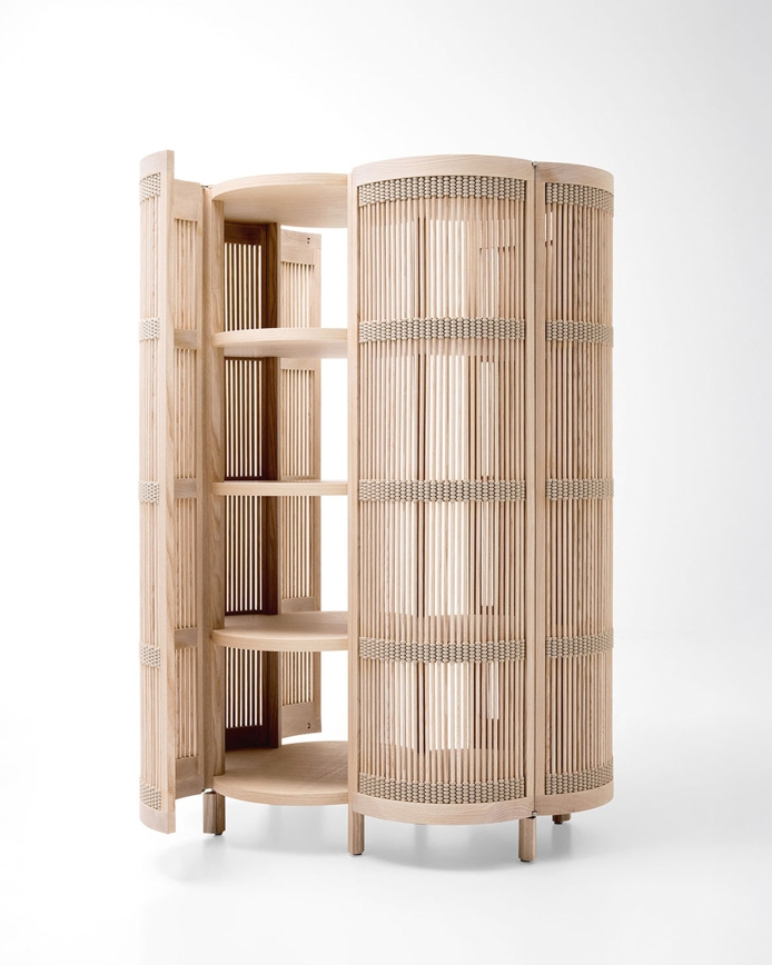 Produced in a limited number of 12 units, the Nuvola Cabinet is was conceived as a form of domestic micro-architecture. Nuvola defines interiors with quiet clarity and restraint. Its double-sided configuration, with mirrored openings, removes the distinction between front and back and allows access from any direction. Four fixed internal shelves support both display and storage, while flat braided rope softens and compliments the structure. All timber elements are sealed with a natural acrylic wax to protect and retain the natural appearance of the timber.