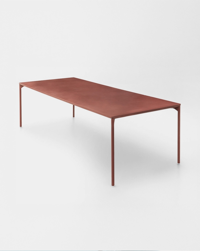 Designed by Francesco Rota, this table features a slim steel frame with a generous span and excellent stability. It is available in two sizes. The frame is treated for outdoor use, while the table is also suitable for indoor settings. The Cementoskin® tabletop comes in a range of beautiful colours. It is rugged and durable enough for outdoor use, yet soft and velvety to the touch. The frame is finished to match the tabletop, creating a cohesive ton-sur-ton look. The Plano series also includes shelving and bench seating.